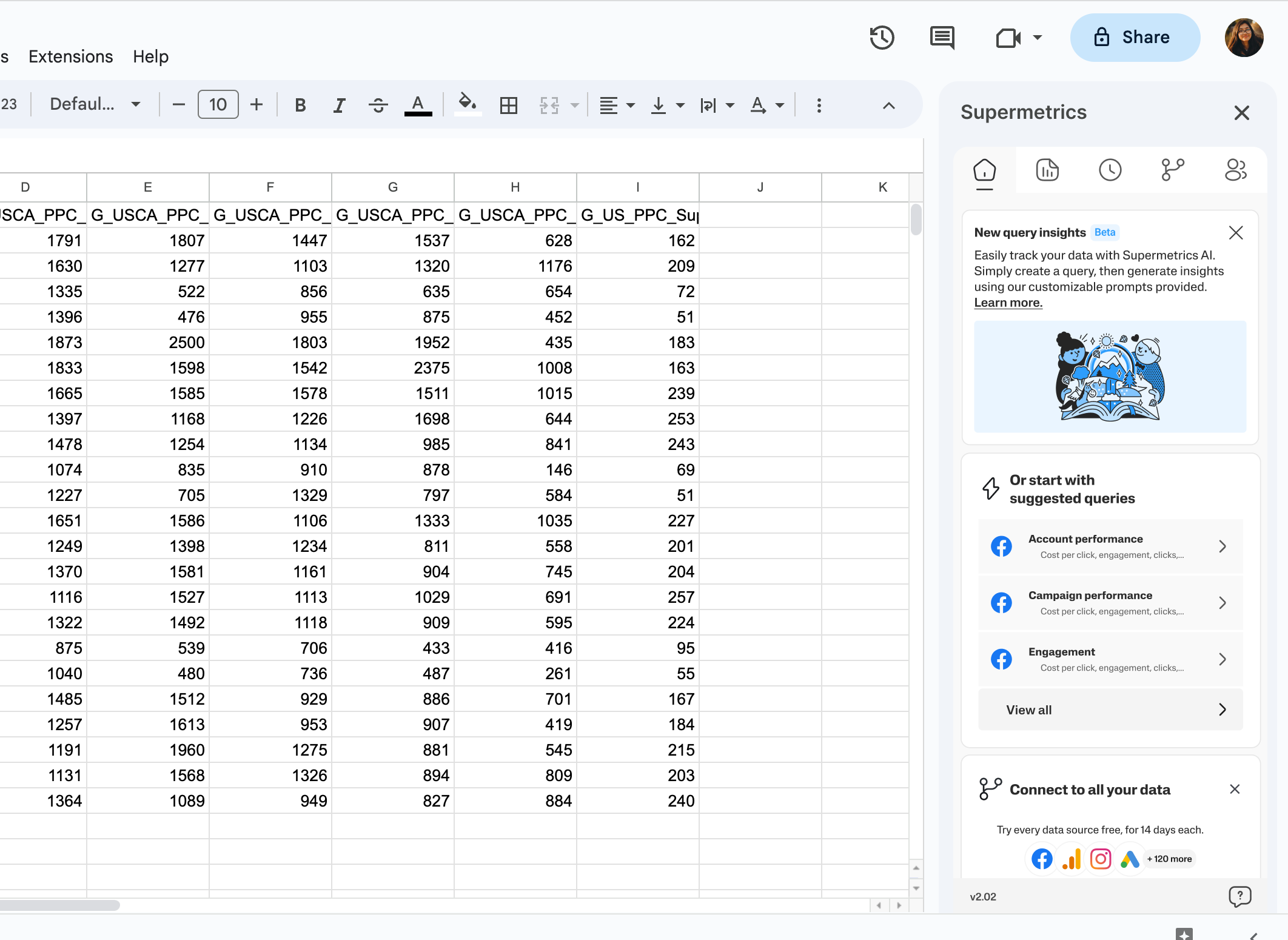 Supermetrics is a marketing data platform that pulls data from multiple sources into reporting tools, and I worked on a generative-AI feature that lets time-strapped users without data teams automatically generate clear data summaries inside the same workspace so they can drop insights straight into their reports quickly and easily.